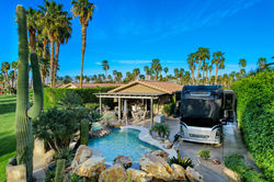 Gorgeous Yard with Boulder Waterfall Pool and Spa.